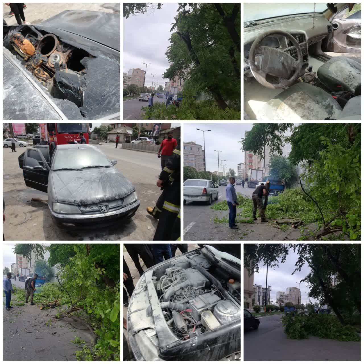 در این حوادث یک شاخه قطور از درخت چنار به علت پوسیدگی در بلوار مادر دچار نیمه شکستگی و در حالت معلق موجب مسدودی بخشی از خیابان گردید که اقدامات مربوط به ایمن سازی و رفع انسداد توسط آتش نشانان ایستگاه شماره دو سازمان و با حضور و همکاری پرسنل سازمان سیما منظر و فضای سبز شهرداری صورت پذیرفت.