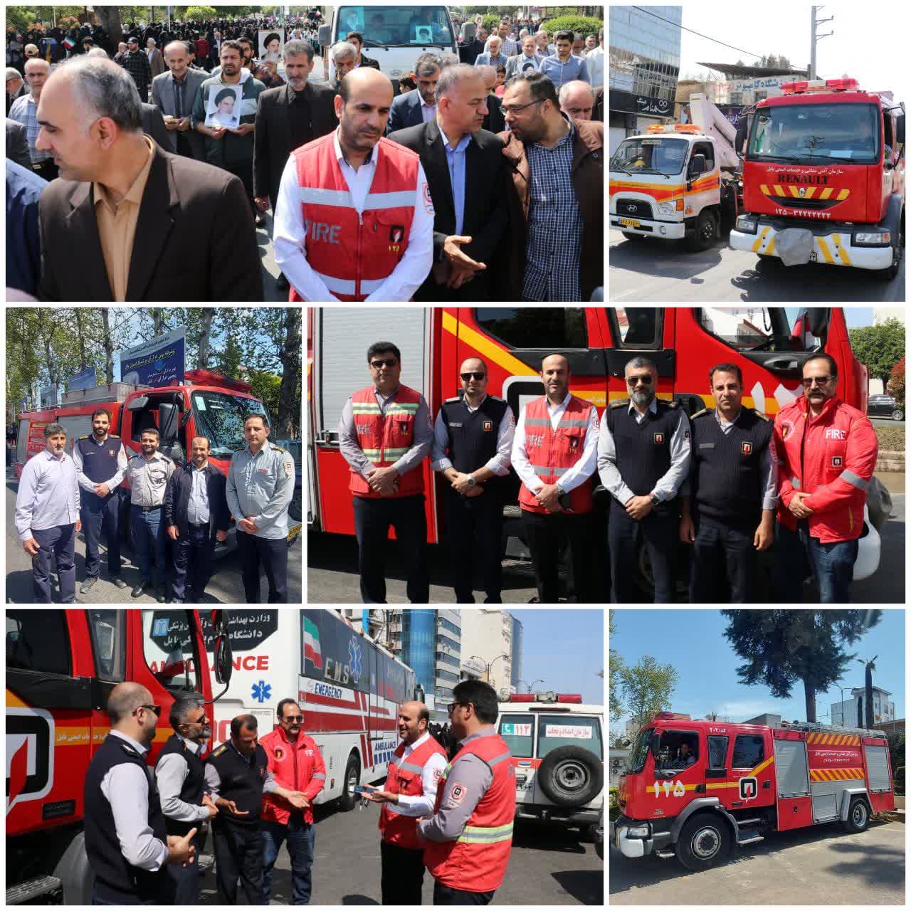 در همین راستا سازمان آتش نشانی با استقرار سه دستگاه خودرو در مسیر حضور مردم و راهپیمایان شرکت کننده در همایش عظیم روز جهانی قدس و در محل مصلی جمعه شهر نسبت به تامین ایمنی راهپیمایان اقدام نمود.
