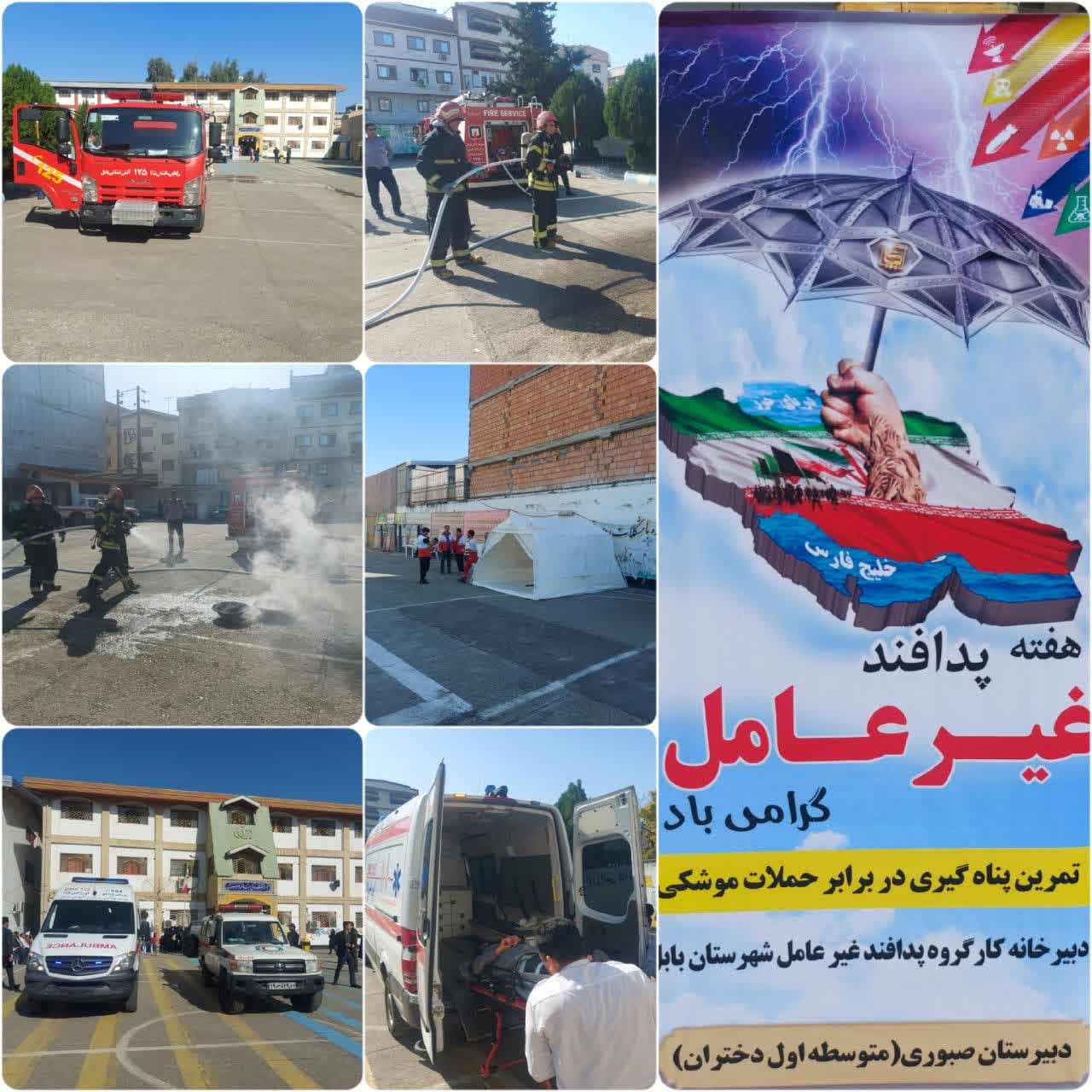 با حضور تیم اطفا حریق سازمان #آتش_نشانی بابل و همکاری دستگاه های عضو پدافند غیرعامل شهرستان بابل