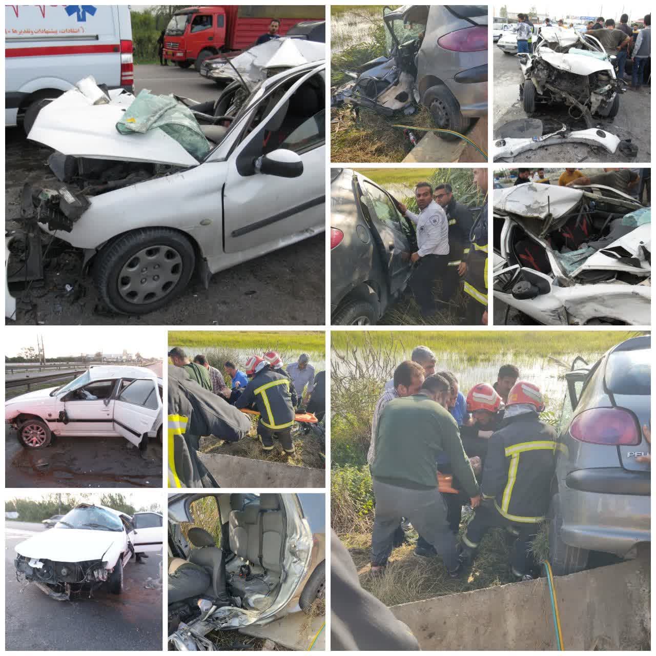 در دیگر سوانح رانندگی شبانه روز گذشته برخورد شدید خودرو پژو ۲۰۶ سفید با یک دستگاه کامیون موجب مصدومیت دو خانم راننده و سرنشین حدودا ۲۵ ساله این خودرو شد و در حادثه دیگر انحراف و برخورد شدید یک دستگاه سواری پژو پارس سفید رنگ با گاردریل موجب مصدومیت یک خانم گردید که امداد رسانی ها در این حوادث جهت ایمن سازی محل حادثه و نجات مصدومین توسط امدادگران ایستگاه شماره هفت سازمان صورت پذیرفت.