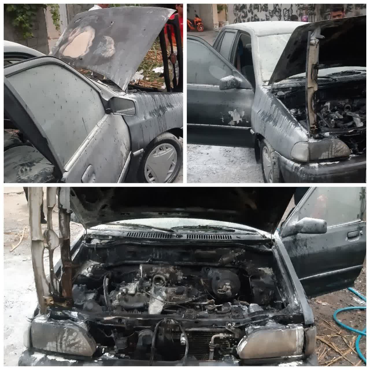 پیرو تماس تلفنی شهروندان با سامانه ۱۲۵ مبنی بر وقوع آتش سوزی خودرو بی درنگ آتش نشانان ایستگاه شماره سه سازمان آتش نشانی و خدمات ایمنی شهرداری بابل به محل حادثه واقع در بلوار ولیعصر(عج) بوستان ۱۳ اعزام شدند و مشاهده گردید یک دستگاه خودرو پراید از ناحیه موتور پس از اتصالی در سیستم برق دچار آتش سوزی شده است.