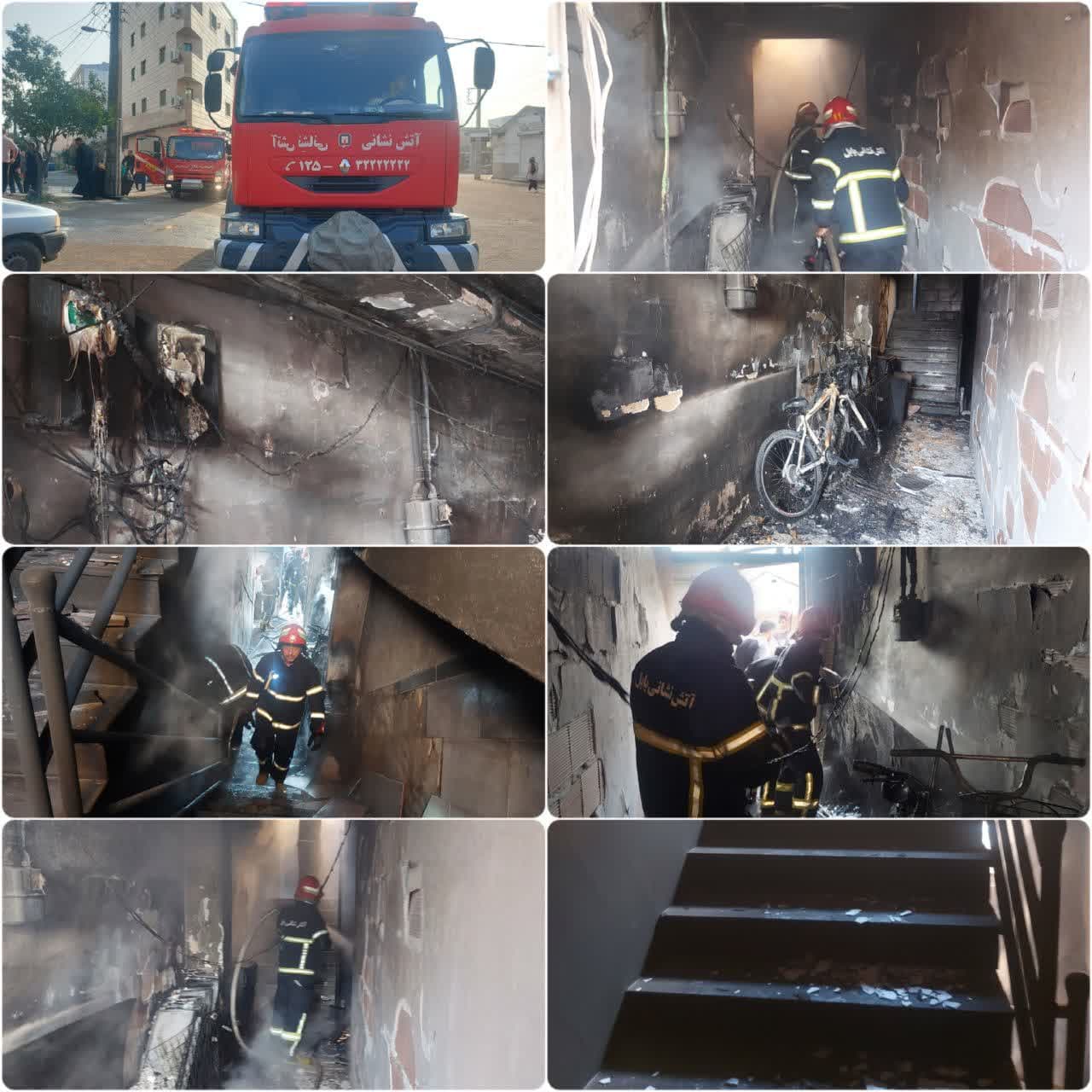 آتش نشانان بلافاصله ضمن ایمن سازی محل حادثه و پس از قطع برق و گاز ساختمان، با کشیدن چند رشته لوله ی آبدهی خود را به کانون حریق رسانده و ضمن جلوگیری از گسترش آتش و سرایت آن به اتاق ها و اطراف توانستند آتش را بطور کامل مهار و اطفا نمایند.