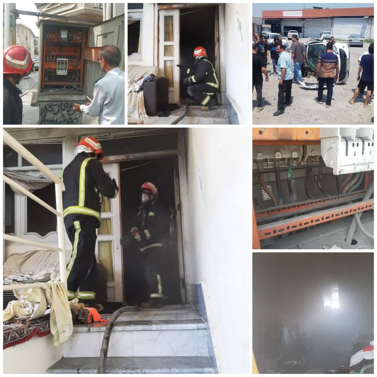 عملیات انجام شده در این مدت ۱۱ مورد آتش سوزی شامل آتش سوزی تابلو برق داخل مغازه واقع در بلوار آیت اله خامنه ای ،آتش سوزی منزل مسکونی واقع در بلوار شهید بهشتی، آتش سوزی تابلو برق واقع در بلوار طبرسی،آتش سوزی منزل مسکونی واقع جاده جدید آمل و همچنین ۷ مورد آتش سوزی باغات،ضایعات ،نیزار و علفزار سطح شهر بوده است.