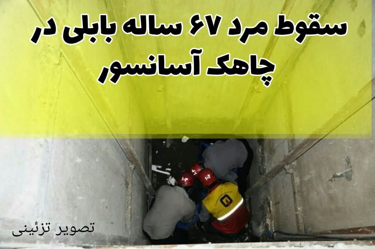 به گزارش روابط عمومی سازمان آتش نشانی و خدمات ایمنی شهرداری بابل حادثه سقوط مرد ۶۷ ساله بابلی داخل چاهک آسانسور در ساعت ۱۰:۰۱ صبح امروز به آتش نشانی بابل گزارش شد.